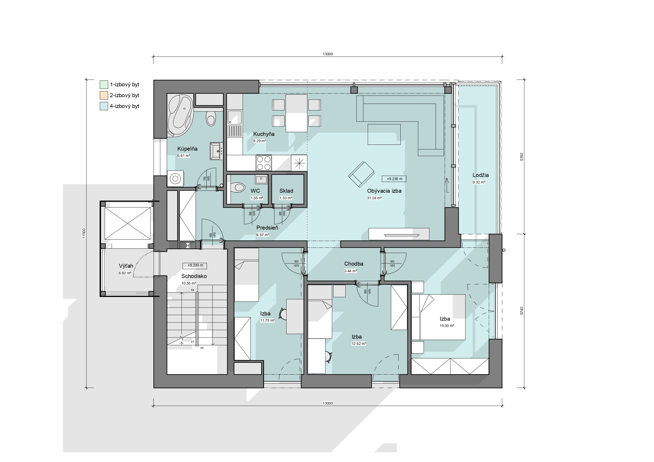 - podlaha podľa výberu - plávajúca podlaha, vinyl, polyuretán